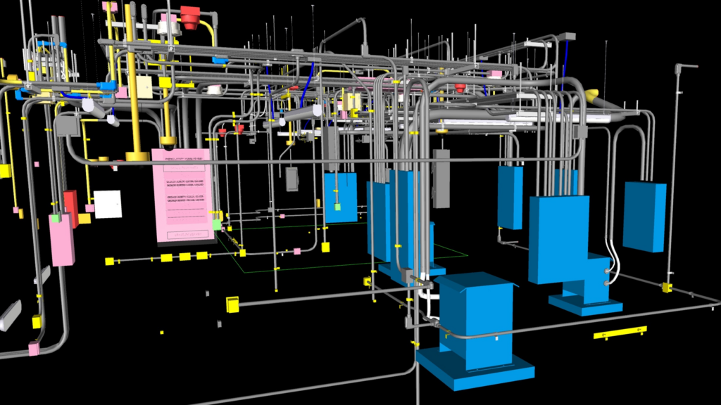 - Relay panels, switchgear, HVAC units, ductwork, cable trays